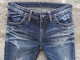 11 oz stretch slub deep indigo denim, RHT 3/1, 98% cotton,2% spandex.